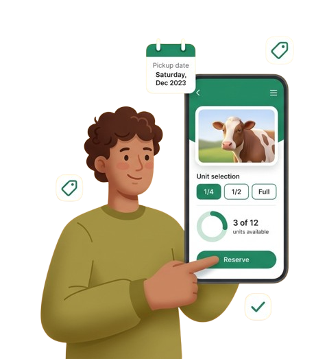 Other buyers join until all units of the cow are fully reserved. Track progress in real-time as the community grows.